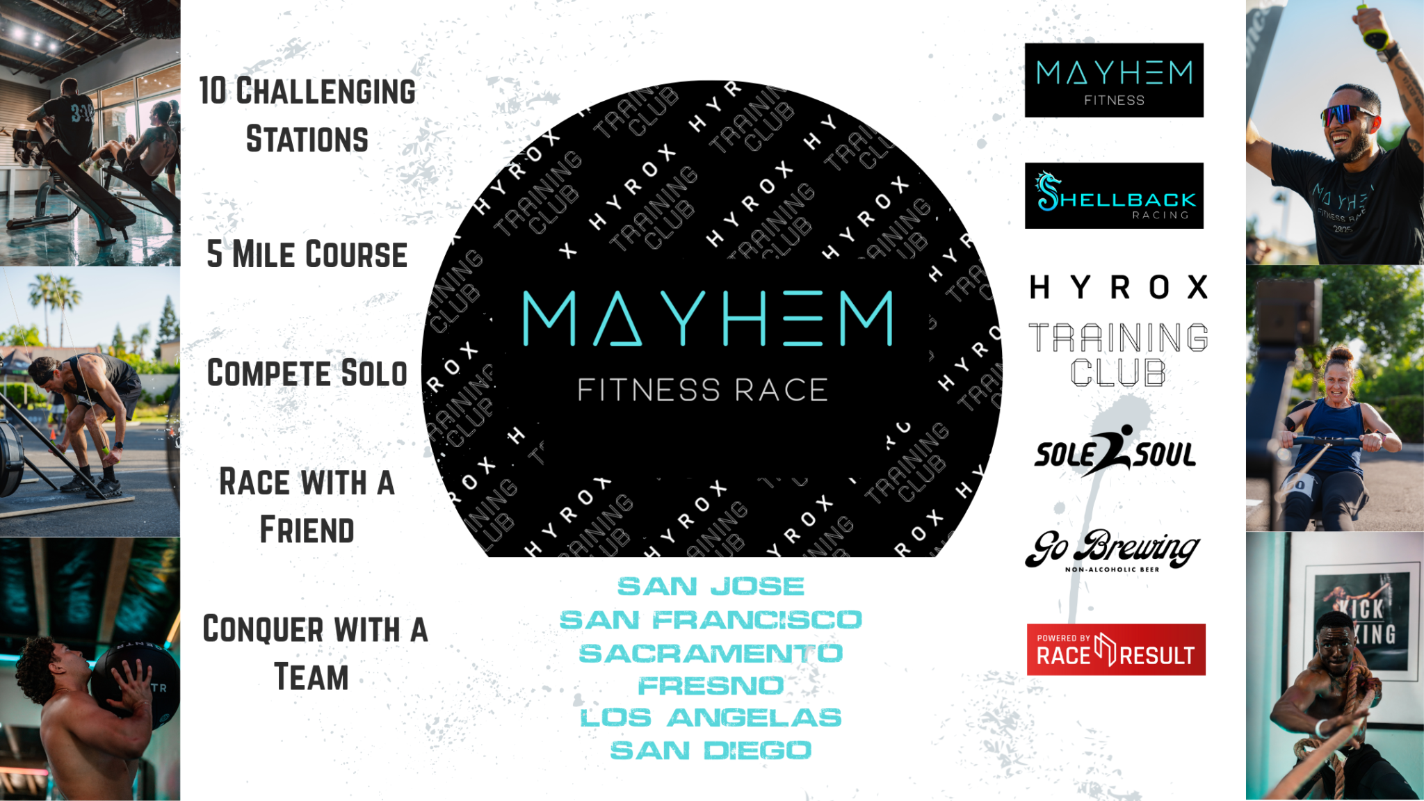 MAYHEM Fitness Race is an outdoor functional fitness challenge built for athletes who want more than a typical race. This high-intensity event fuses functional strength, endurance, and tactical, military-inspired movements into a true test of grit and resilience. Competitors will take on 10 demanding workout stations, each separated by a half-mile run, pushing both physical and mental limits from start to finish. Athletes can choose to race in the Open or Pro division, and compete solo, with a partner, or as part of a team. Whether you’re chasing the podium or simply proving something to yourself, MAYHEM is where fitness meets controlled chaos.